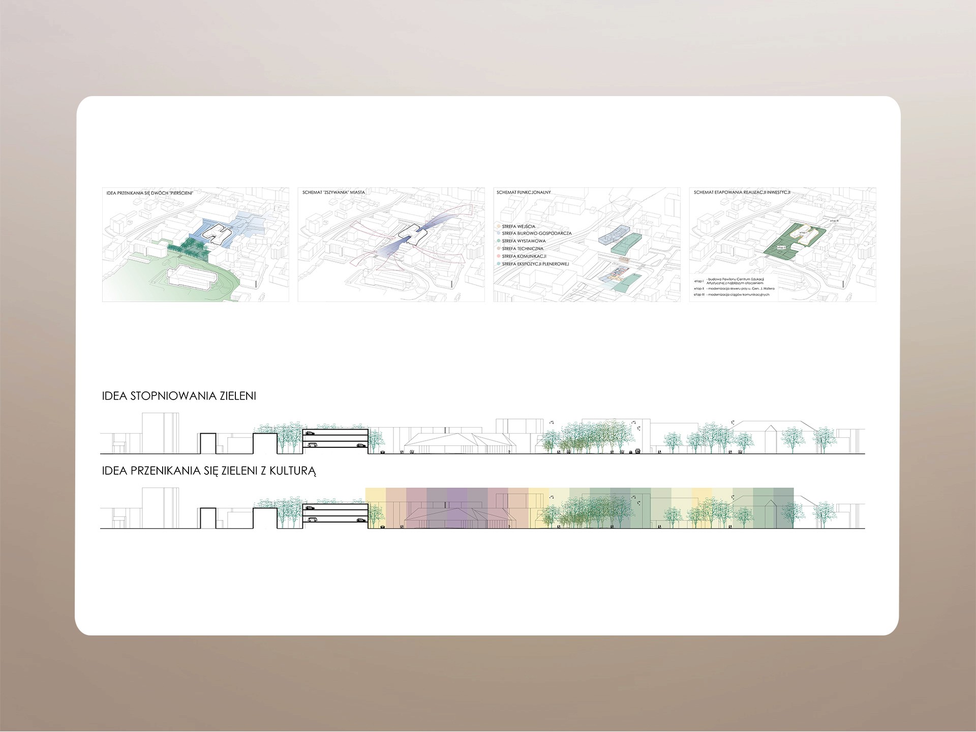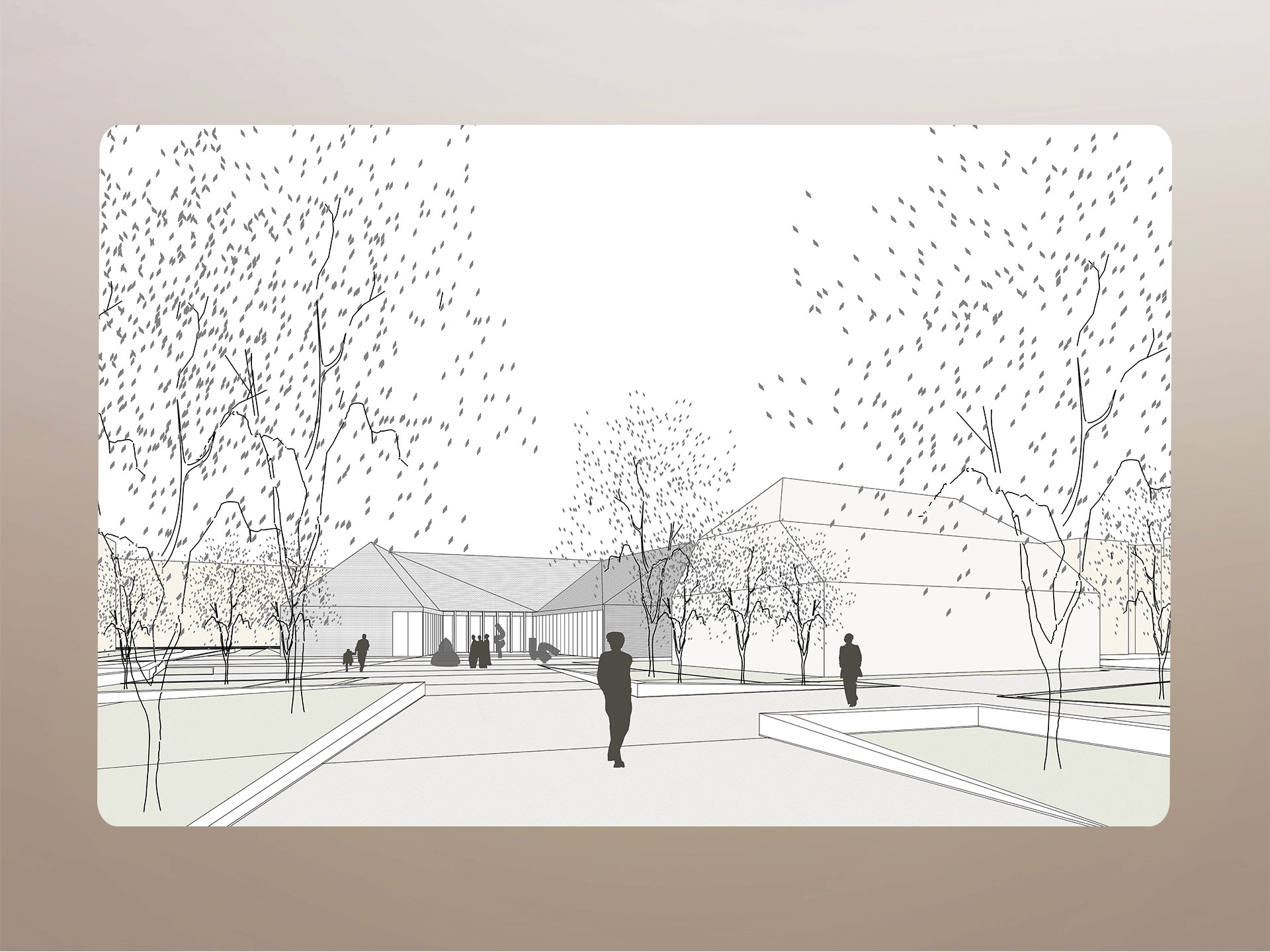 The proposal creates a cultural hub right in the city center. It's a new Art Pavilion surrounded by beautiful public space. The project connects important city spots with clear walking paths. The building works as both a landmark and a practical space for art shows and learning. It draws inspiration from local materials and history. The design mixes modern style with traditional touches. The plaza around it brings people together. There's greenery, water features, and outdoor sculpture displays. It's a place where culture and daily life naturally come together.
