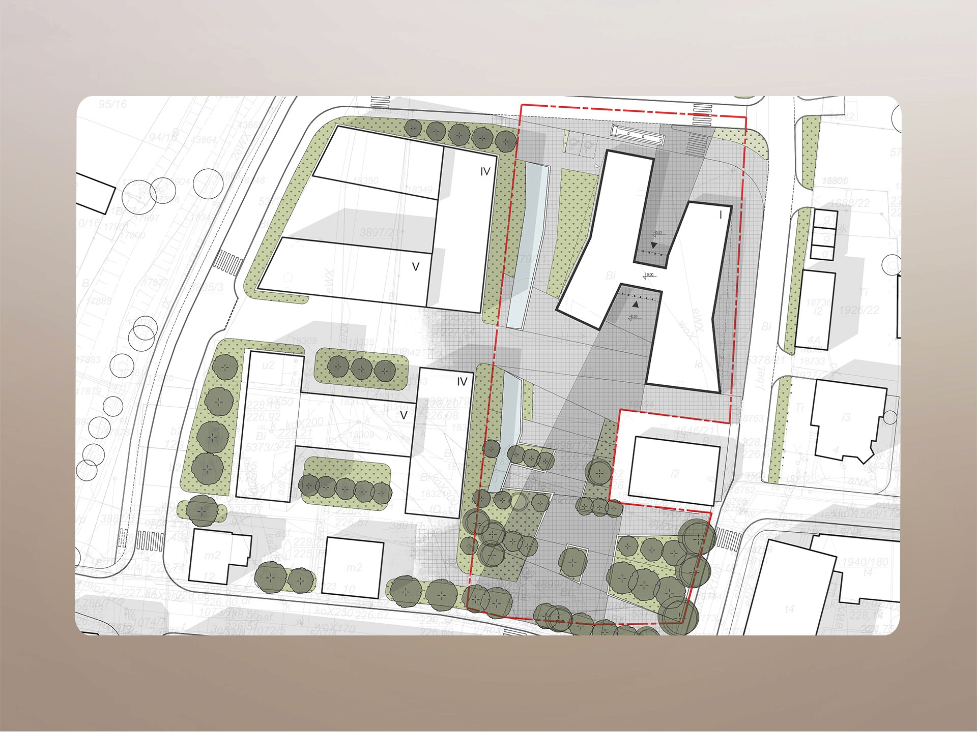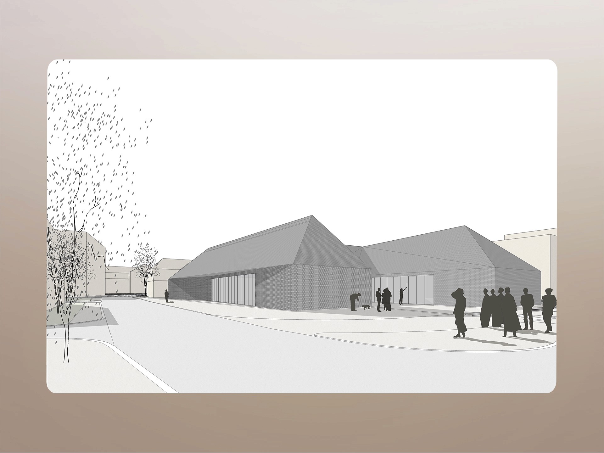 The design introduced three main spatial directions that formed the basis of the urban layout. This resulted in a coherent, walkable public space that naturally integrates surrounding functions and enhances the city’s connectivity. The final design consists of two interconnected volumes with distinct entrances, featuring a multi-pitched roof and light grey brick façades. The building draws inspiration from nearby historical structures, making it both contemporary and contextually grounded. The site was redesigned using granite paving patterns that echo urban directions, with tiered vegetation inspired by the idea of “rings” of greenery. A shallow urban pond references the historic riverbed, and seating and plants create a welcoming, well-composed space.