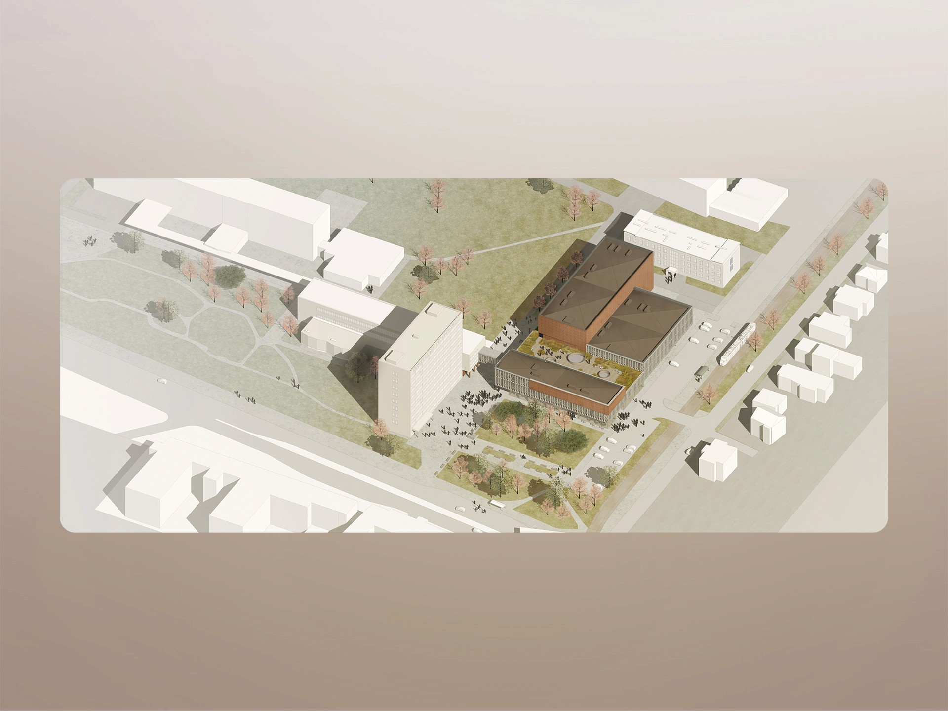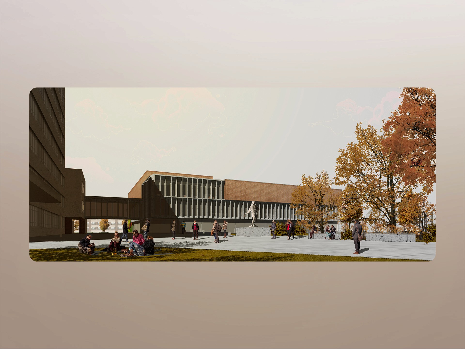 The proposed design successfully responded to the goals of the competition by delivering a cohesive and future-oriented urban and architectural concept. The project harmonized with the existing campus of the University of Life Sciences, respecting both the surrounding built environment and the authorship of the original campus designers. It presented a balanced and well-structured spatial composition that ensured functional efficiency and user comfort. The concept prioritized the creation of a welcoming, intuitive, and flexible space for students and staff, while incorporating modern architectural solutions that addressed evolving educational needs. Special attention was given to the library, which was designed as an adaptable and forward-thinking space, capable of meeting current demands while anticipating future trends in learning, technology, and collaboration. Overall, the project effectively combined clarity of form, contextual sensitivity, and long-term usability, fulfilling the competition’s ambition to create a high-quality, future-ready academic environment.